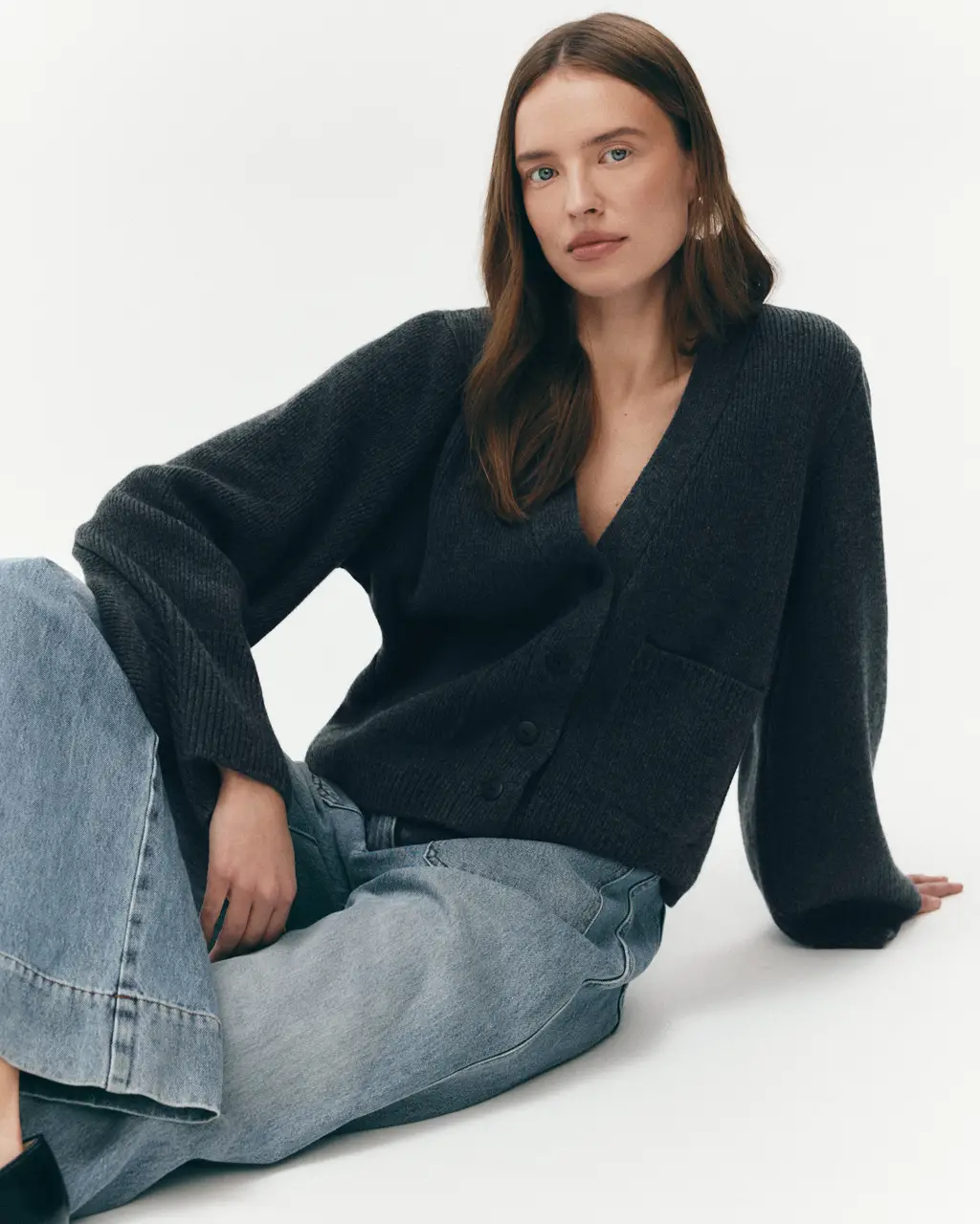 Behind the Ether brand stands quality, natural materials and timelessness. We create clothes that do not succumb to trends, because we are committed to spreading the idea of sustainable and responsible fashion. Graphite unbuttoned cardigan fits perfectly into these premises and is a staple of a well-constructed capsule closet.