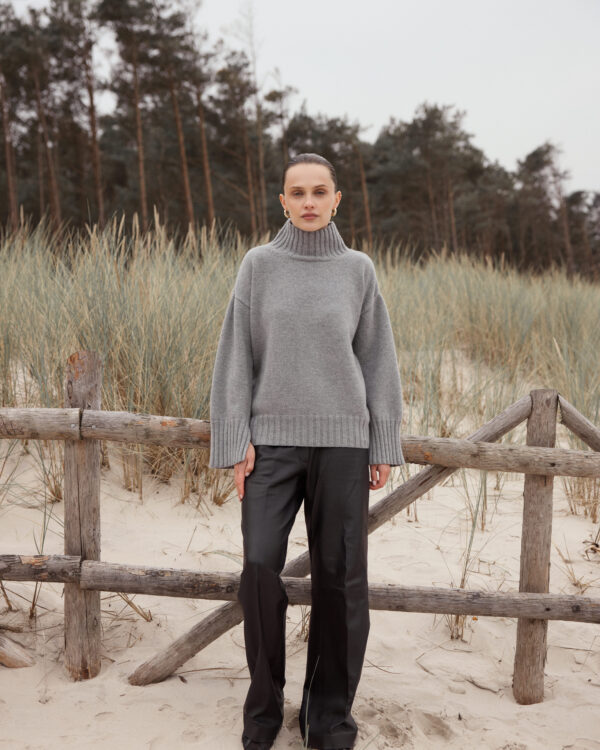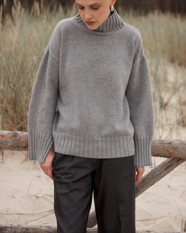The Beige Antlia Wool Sweater is a blend of minimalist design, timeless class, and extraordinary comfort. Designed for women who value aesthetics and comfort, its subtle beige hue emphasizes naturalness and versatility - making it an ideal choice for any occasion. The relaxed silhouette guarantees freedom of movement, while the gently dropped shoulder line lends it a modern character. Ribbed cuffs on the sleeves, neckline, and hem are not only an aesthetic detail but also practical, ensuring that the Beige Antlia Wool Sweater drapes beautifully when worn. Understated stitching completes the design, highlighting its form and adding a touch of originality.