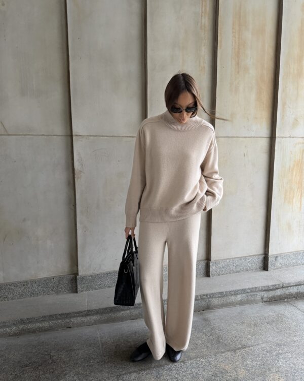 Grey wool set: sweater and trousers – elegance and comfort combined